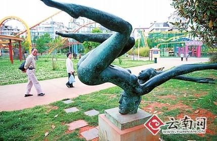 云南丽江某主题公园内的“人体蜈蚣”、“三面女孩”等雕塑,造型诡异夸张,令人产生不适;昆明市大观公园西区的裸体女性雕塑,仰面朝天,引发“有伤风俗”的质疑。