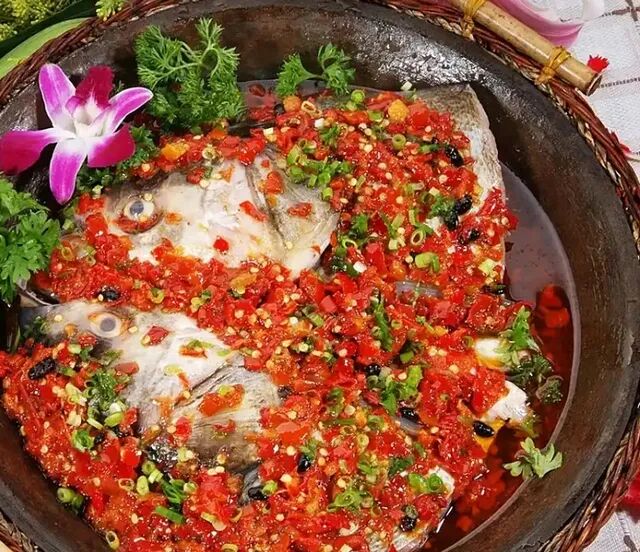 从博物馆出来已是中午,在附近一家很大的湘菜馆,点了78元一份剁椒鱼头。等了好一阵,端上来一看,吓我一跳,那巨大的白瓷盘,像婴儿的洗澡盆。鱼肉鲜香细嫩,就着火红的碎剁椒和金黄的姜丝,我放开裤带猛吃,撑到打嗝还剩不少。我本想打包带到路上吃,长沙似乎没这习惯,那就入乡随俗吧。