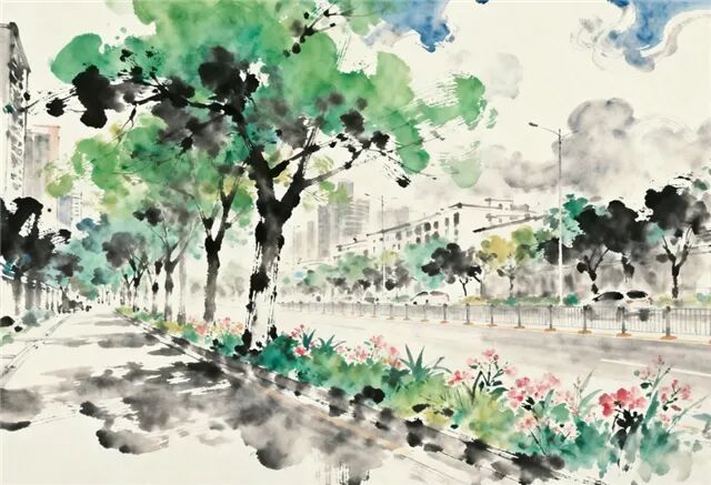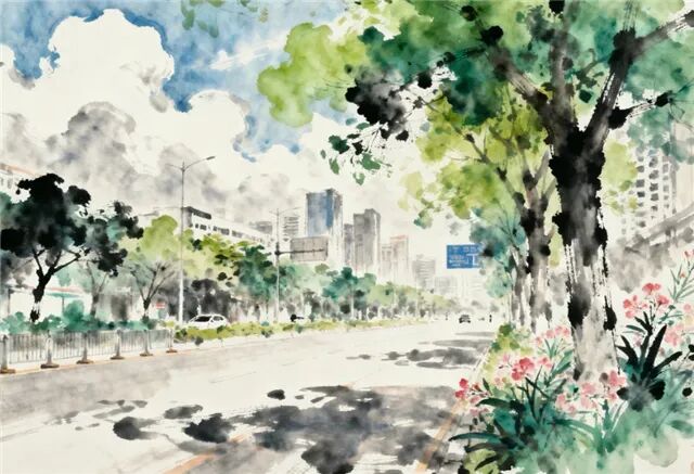 行道树,还擎着不肯褪去的绿