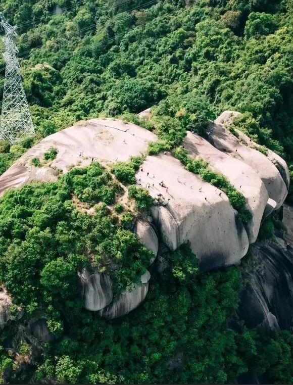 注:亚婆髻山(又名阿婆髻或大髻婆山)位于深圳市宝安区与光明区交界处,靠近凤凰山和九龙坑水库,海拔约220米,是一座以山顶巨型岩石和原始野趣为特色的小众登山地,登顶需借助铁链攀爬,可俯瞰石岩湖、阳台山及城市景观。