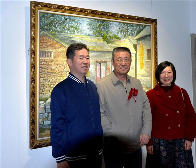 图为2025年11月9日,右(1)为青岛农业大学人文社科学院教授、国学研究院院长柳清泉;右(2)为高密市写作学会名誉会长邵纯生;右(3)为高密五中校长张家富。他们在张守河油画作品前合影。
