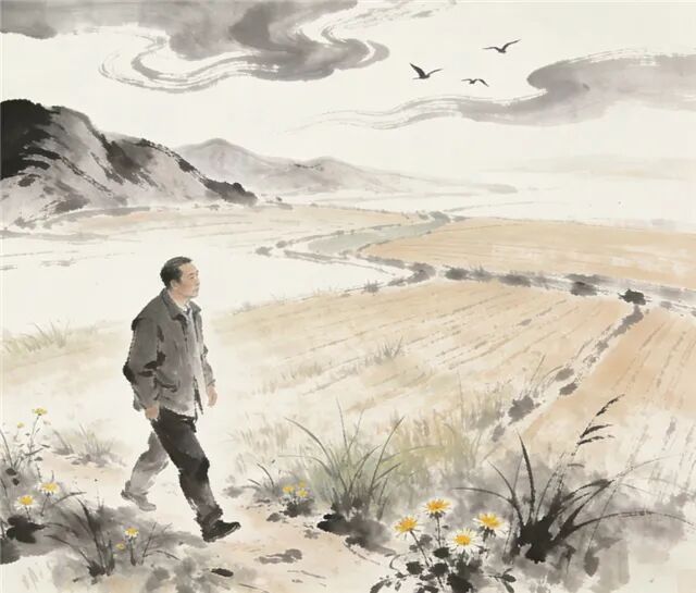 空旷的稻田里,