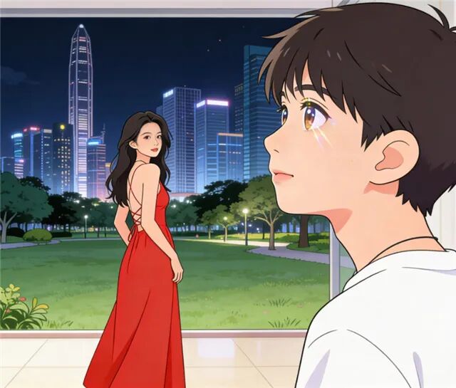 望着一袭红裙的她