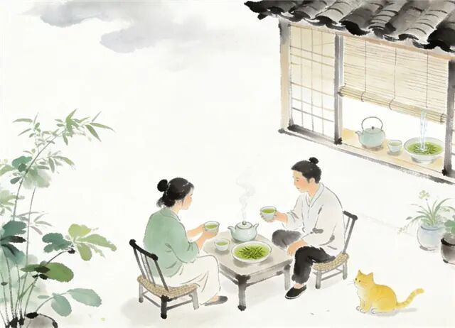知堂老人《吃茶》是一幅白描:“喝茶当于瓦屋纸窗下,清泉绿茶,用素雅的陶瓷茶具,同二三人共饮,得半日之闲,可抵十年尘梦。”一束居尘的旧光淡意犹浓,毫不褪色,但若不是二三人,就一己带影岂不更好?