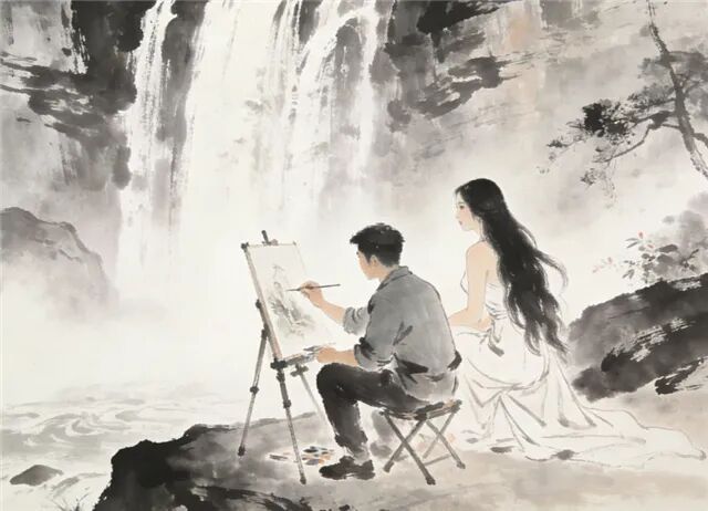 石壁上流苏如瀑是她钱青丝的刘海。他描缪,她随意摆动姿态。柳丝悸动心与心的同脉。她眼睛里全是他文武全才。