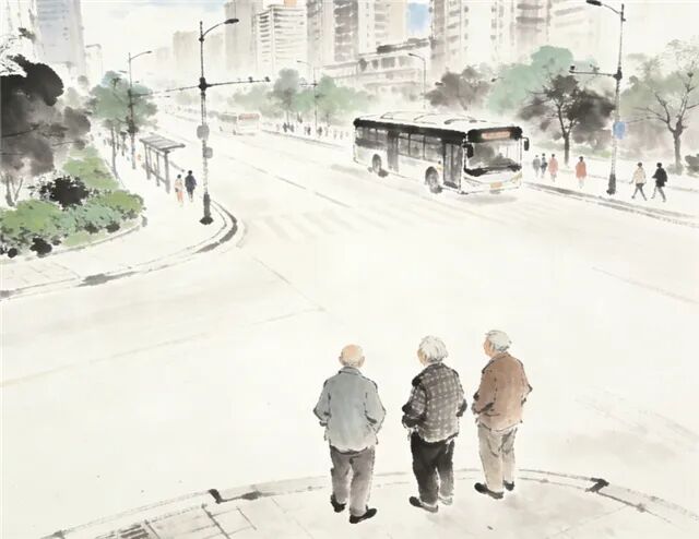 我们上了车,车上满了座,还有不少乘客抓着扶手带站在那里。我们也只好抓着扶手带站着。司机师傅从镜子里看到我们几位白发老人站着,回头关心地对我们说:“老同志,抓住扶手带站稳啊,我要开车啦。”我们点点头。可是,在司机还未启动车的时候,突然从座位上站起来三个小青年,他们立刻走到我们面前,说:“你们三位老伯伯坐那里吧,我们三个人站这儿。”我们更是不好意思。可是,他们三个人硬是叫我们过去坐。这时候,司机师傅又转过头温和地说:“老同志,你们就不要客气了,你们去坐稳吧,我要开车了。”