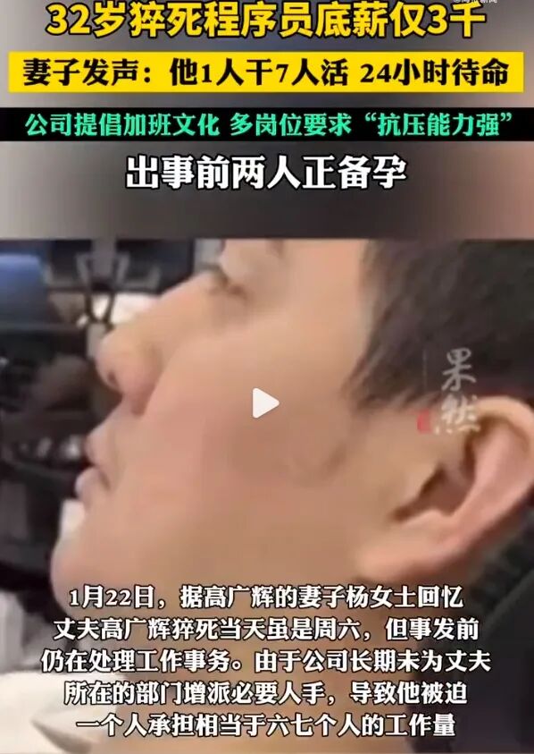 深夜收到朋友发来的新闻链接,两条年轻的生命,相继停在了一个寻常的周末。32岁的程序员高广辉,26岁的工程师陈某。点开细读,心里像压了一块湿重的棉絮。