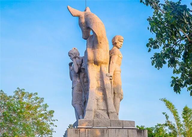 鹿回头景区是三亚市的另一个地标,那头美丽温柔的母鹿,在我的青葱岁月里,开启了对美好爱情的遐想。山不在高,只缘有爱。一组汉白玉雕塑屹立在山头,那是一位英俊勇武的黎族青年猎人,追杀一头母鹿,从五指山一直追到这天涯海边。身处绝境的母鹿没有哀嚎,只是凄然回头,用清澈温柔的明眸,静静地看着猎人。猎人狂暴的心,触碰到似水的眼泪,他情不自禁地放下了弓箭。母鹿化着美丽的少女,与他在此相亲相爱,男耕女织,繁衍生息。