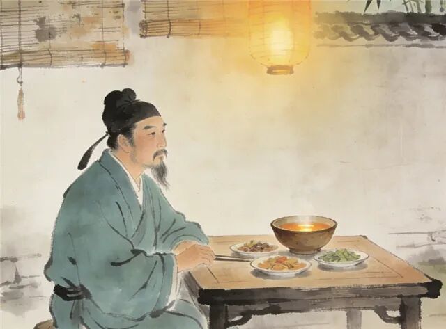 大文豪苏轼一生宦海浮沉,却在饮食中始终葆有一份热忱与兴味。他的年夜饭,或许没有钟鸣鼎食的奢华,却一定少不了一盏温厚的“椒柏酒”。此俗盛于唐,宋人沿袭,除夕以花椒、柏叶浸酒,取辟邪延寿之吉。被贬黄州时,正值人生寒冬,境遇清苦的他,曾发出“晨鸡且勿唱,更鼓畏添挝”的喟叹,连守岁都怕天明,只因团圆时光太过金贵。除夕夜与家人围坐,在陋室中燃起炭火,将亲手酿制的椒柏酒缓缓斟入陶碗。酒色浊黄,椒气辛烈,柏香清苦,一口入喉,温润感顺着喉间蔓延至四肢百骸,驱散了身骨的湿冷,也抚慰了仕途的失意。那杯中摇晃的何止是酒?是“诗酒趁年华”的通透,是对抗逆境的坚韧,是对未来沉静而执着的期许。守岁之夜,那一壶温了又温的酒,便是抵御时间流逝、凝聚亲情的一股暖流。