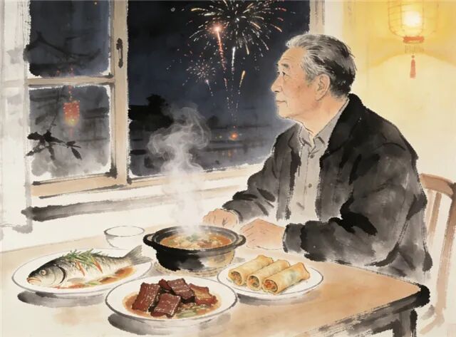 窗外夜色已沉,远处传来爆竹声声。我的目光掠过那一桌渐渐齐备的菜肴,清蒸鱼依然象征着年年有余,腊味合蒸仍然延续着蒸蒸日上,春卷依旧传承着“卷尽晦气、纳进福祉”的吉祥……这一切,宛若一方盛满团圆与期盼的烟火小天地。我忽然觉得,这满桌的“年味”,才真正是中国文化最坚韧、最可亲的载体。它从中华民族的源头流淌而来,在唐宋诗篇中酝酿发酵,历经元明清诸朝,直至今日之餐桌,从未断绝。我们心心念念的年味,其实就是舌尖上的文化味,是“人间有味”的本真,更是以味觉为舟楫,直抵情感深处的乡愁。恰如“但愿人长久,千里共婵娟”的祈愿,纵然时空流转,始终是年味不变的内核。