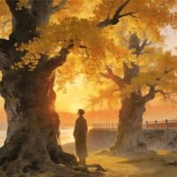 淮畔银杏沐残阳, 百年寒暑护河防...